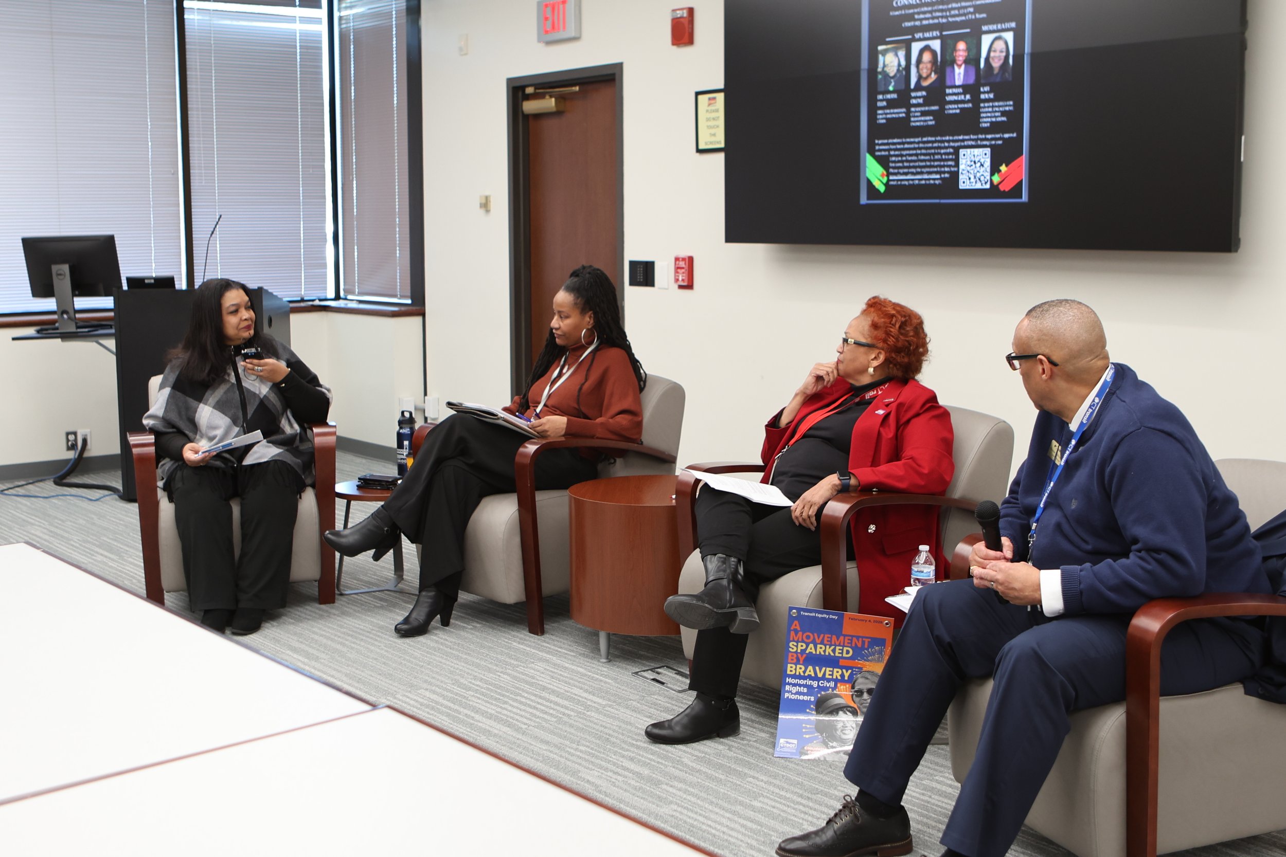 The featured presentation, “African American Leaders in Connecticut State Service,” explored the contributions of Black public workers whose leadership has shaped policy, strengthened organizations, and advanced equitable service across the state. The session connected local history to the broader century-long effort to formally recognize and celebrate Black history in America. The program featured state leaders Dr. Cheryl Ellis, Director of Diversity, Equity, and Inclusion, Connecticut Department of Developmental Services; Sharon Okoye, President of COMTO CT and Transportation Engineer 3, CTDOT; and Thomas Stringer, Jr., General Manager, CTtransit, as panelists and was moderated by Kafi Rouse, Head of Strategy for Culture, Engagement, and Inclusive Communications, CTDOT.